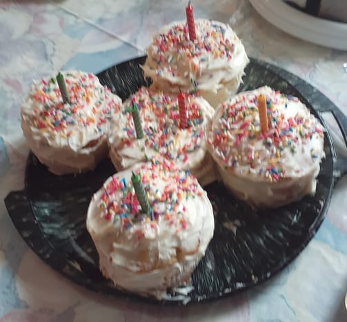 The menu? A pizza and lemon birthday cakes to finish it off. Noone was working all day for this gathering. It was such a fun time. I made everyone a small birthday cake for each to take home after having a slice from a bigger cake. Knowing Nana enjoys things in small batches, our “Bash” lasted maybe two hours but the giggles and their memories lasted for days.