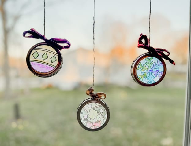 Ok. Grandma can’t stop finding neat things on the internet while she scrolls with her first cup of tea. Today it was making suncatchers by printing off a colouring page, colouring shapes for suncatchers. Add the colouring to a mason jar ring and hang in the windows. Easy Peasy, keep those hands busy